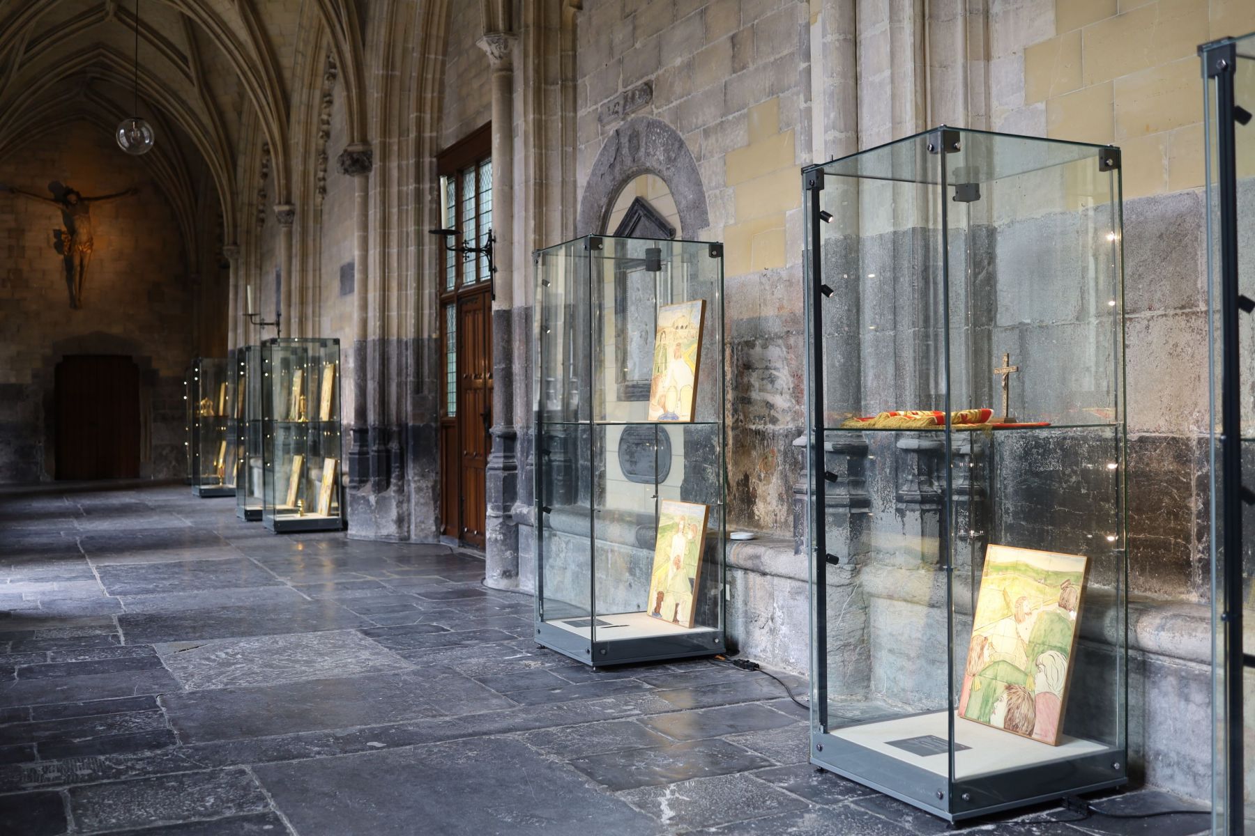 Aan de hand van 14 handbeschilderde Maastrichtse tegeltableaus door George van de Goor (1983) beleeft u de Kruisweg van Christus in en om de stad Maastricht. Het zaalboekje in vier talen (waaronder het Mestreechs) en de speciaal ontworpen noveenkaars zijn bij de balie van de schatkamer te koop.